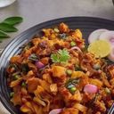 Tender chicken simmered in aromatic spices, served with flaky parotta for a delightful experience.