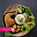 Ayam goreng yang dihancurkan dengan sambal pedas, dihidangkan bersama nasi & ulam segar