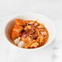 Vermicelli in spicy coconut milk curry gravy with fish balls, chicken, dried tofu and vegetables