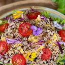 Nutty quinoa tossed with roasted pumpkin, fresh greens, and a zesty citrus dressing.
