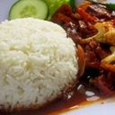Sliced beef cooked in a spicy gravy filled with carrots, long beans and cauliflower Served with white rice and sliced cucumbers