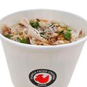 Homemade style chicken porridge with shredded chicken and krupp krupp fried onion.