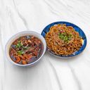 A hearty dish featuring tender beef and flavorful noodles, perfect for meat lovers