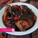 Chicken in a savory soy sauce preparation with rich flavor. For reference only.