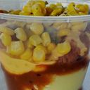 mashed potato, chicken popcorn, sweet corn, botak signature gravy, nachos cheese