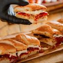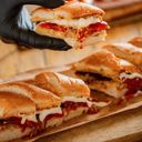 Long John (Roti Bersaiz 12inci Panjang / 8 potongan) QUATTRO Bermaksud CHEESES, Moza, Cheddar, Parmesan & Cheesy Nachos. Dilimpahi dengan 4 jenis Sos istimewa. (Saiz hidangan 2-4 org)