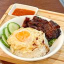 北坊秘汁叉烧,荷包蛋,白饭和黄瓜。