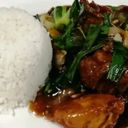 Tender chicken stir-fried with aromatic black pepper, served over fluffy rice and fresh vegetables.