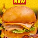 【新品 New Arrival, 185 gram patty 】 Boneless Spicy Chicken Thigh Burger with Slice Cheese. More good with an egg. 香辣的"无骨"鸡腿排配上起司片, 加上鸡蛋更棒. Cabbage,cucumber,onion,mayo,cheese sauce. 包菜,黄瓜,洋葱,美乃滋,起司酱.