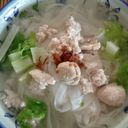 mee sua, meatball, liver, intestines, minced pork, sliced pork, pork belly, vege