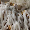 Savory butter rice topped with tender, flavorful pork, a delightful fusion of textures and tastes.