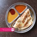 Delicious roti canai prepared with lightly beaten egg and slices of onion encased inside