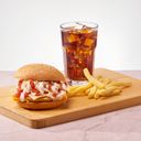 A substantial fried chicken burger served with crispy fries & a selection of refreshing soft drink. A fulfilling combo for a larger appetite.