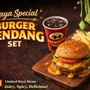 Juicy patty coated in rich, aromatic rendang sauce, paired with fresh vegetables and a soft bun. A perfect balance of spicy, savory, and bold local flavors.