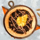 Fluffy egg pancake topped with shredded chicken cooked in aromatic spices.