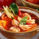 Hot & sour thai soup with mixed vegetables, seafood, crab and mussels