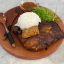 Set dish of white rice, 2 pieces fried chicken and spicy sambal