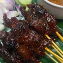 Grilled marinated beef skewers served with a rich peanut sauce and fresh cucumber salad.