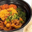 蒜香鸡肉,鸡肉香肠,鸡肉火腿,马铃薯,莲藕,油麦胆 Garlic Chicken, Chicken Sausage, Chicken Ham, Potato, Lotus Root, Romaine Lettuce.