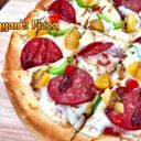 CAPSICUM, PINEAPPLE, ONION, SLICES OF PEPPERONI AND MOZZARELLA CHEESE