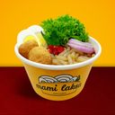 A rich, spicy noodle soup with shrimp, chicken, and fresh herbs in a coconut broth.