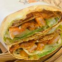 所有美味的食物都包裹在里面,有鸡柳、烤香肠、鸡肉片、土豆丝。