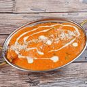 Chicken cooked half "tandoor way", the other half finish the curry way. Popular known as butter chicken.