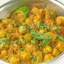 Minced mutton shaped into Ping-pong balls, deep-fried and served in a special curry sauce.