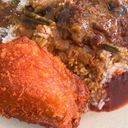 A creamy, savory dish made with beef, spices, and coconut milk, served with rice.