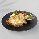Breaded chicken chop fried until golden crispy top with special cheese sauce