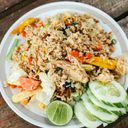 Chicken in a savory soy sauce preparation with rich flavor. For reference only.