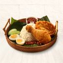 2-pc Chicken (OR), 1 Nasi Lemak, 1 Hard Boiled Egg, 1 Sambal Anchovies, Peanuts, Cucumber