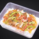 Crispy sliced fish tossed in a tangy, sweet & savoury sauce with onions capsicums served with rice