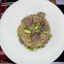 Stir-fried rice cooked with beef pieces, herbs & spices