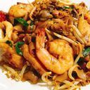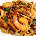 Wok-fried kuey teow, prawns, sotong rings & beansprouts