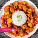 Rice with pork, capsicum and pineapple chunks cooked in sweet sour and spicy sauce