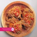Crispy battered fried chicken, mixed with hot spicy sambal and salad