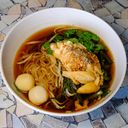 Thai-style rice noodle soup with aromatic herbs, tender meat, and flavorful broth.
