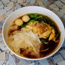 Flat rice noodles topped with hot, spicy and sour tomyam soup, diced chicken and vegetables