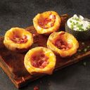 Shredded cheese, beef bacon and served with sour cream and green onions.