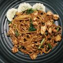 Spicy stir-fried noodles with vegetables, tofu, and a blend of aromatic spices for a flavorful experience.