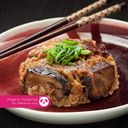 Savory steamed rice topped with tender chicken, mushrooms, and fragrant soy sauce, wrapped in lotus leaf.