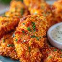 Baked or fried potato dish topped with melted cheese and savory toppings for a rich and indulgent flavor