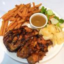 Juicy, tender chicken marinated and grilled to perfection with a smoky glaze. Served with Crispy Fries, crunchy Keropok Panda, fresh garden salad, and a side of Garlic Sauce for dipping.
