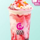 Our top selling strawberry smoothies with our signature cheese mousse topped with chewy brown sugar pearls & rainbow jelly & strawberry sauce