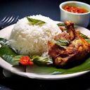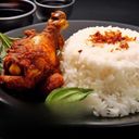 Nasi kukus, ayam berempah, gulai, timun & beverage