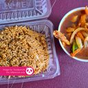Spicy fried rice with tender chicken, vegetables, and a hint of chili for a flavorful kick.