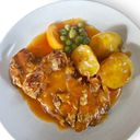 Muslim Friendly Our best-selling Hainanese Chicken Chop made with fres (never frozen) halal chicken, tender and juicy, served with deep-fried potatos, fresh tomatos, peas, and our original homemade Hainanese tomato sauce. A must-try favourite!