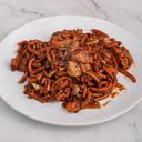 Fresh egg noodles stir fried with soy sauce, vegetables, fish cakes and shrimp
